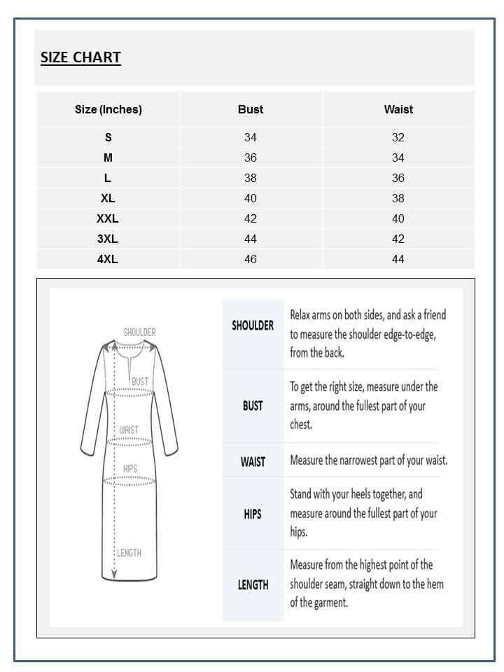 Size; Kurti: XS-34, S-36, M-38, L-40, XL-42, XXL-44, XXXL-46, Bottom: Free Size (Upto 44),